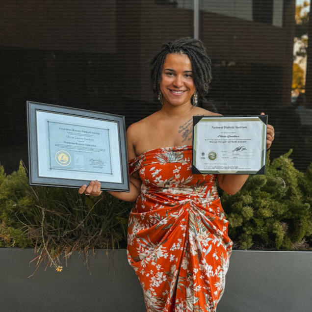 Hey, I'm Liv! I’m a certified massage therapist, neuromuscular therapist, and 500 hour yoga facilitator offering trauma informed, holistic care for people living with chronic pain, stress, and nervous system overwhelm.My work is shaped by lived experience. I know what it’s like to live in a body that feels unpredictable or dismissed. To navigate pain, migraines, or a diagnosis that changes how you move through the world. Those experiences guide how I show up in the treatment room with presence, gentleness, and respect.I believe chronic pain deserves acknowledgment, not minimization. Care should feel collaborative, safe, and responsive to your nervous system. Every session is designed to meet you where you are, without pressure or force.I completed 1250 hours of massage therapy and advanced neuromuscular training at the National Holistic Institute. My externship and clinical experience includes private practice settings such as Oak Park Massage Clinic, Lotus Root Massage, Remedy Massage Therapy, and MD’s Medical Massage. Across these environments, I supported clients with a wide range of needs including chronic pain, migraines, injury recovery, and stress related tension.Through Carespace by Liv, I offer bodywork and restorative practices focused on nervous system regulation and pain management. My approach blends technical skill with lived understanding to create a welcoming environment for rest, reconnection, and resilience.A grounded approach to pain relief and nervous system support.Thoughtful, skilled care designed to support regulation and relief.See you soon.CAMTC License #99855